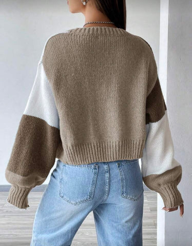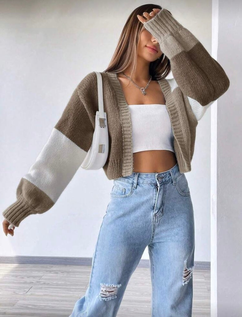 • Cardigan long clouté à épaules tombantes en blocs de couleurs, Top à manches longues