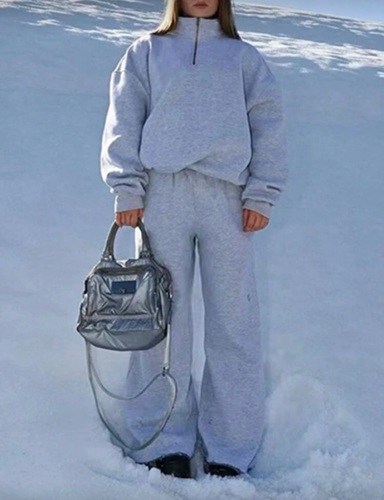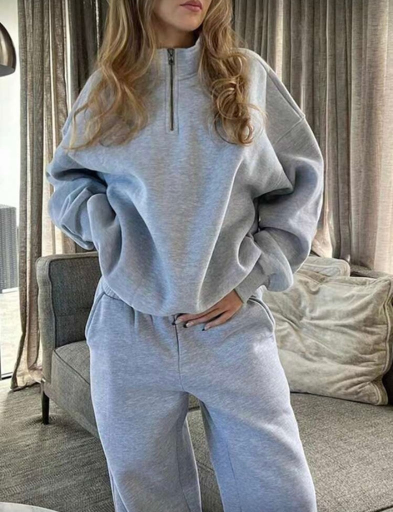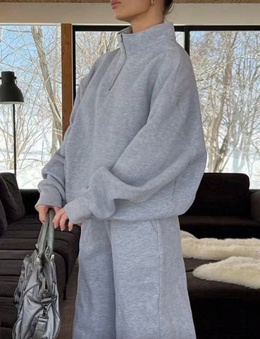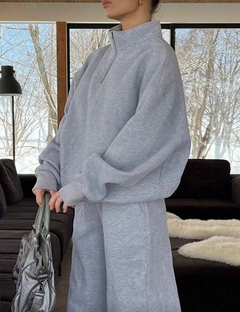 • Ensemble deux pièces pour l'automne et l'hiver. Composé d'un pull à capuche à manches longues avec demi-fermeture et d'un pantalon ample. Parfait pour rester au chaud et à la mode pendant les mois froids. Conçu pour un confort maximal.