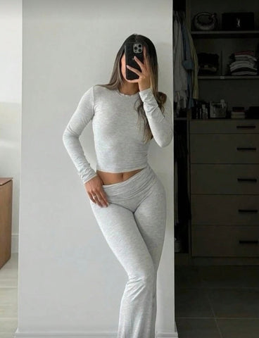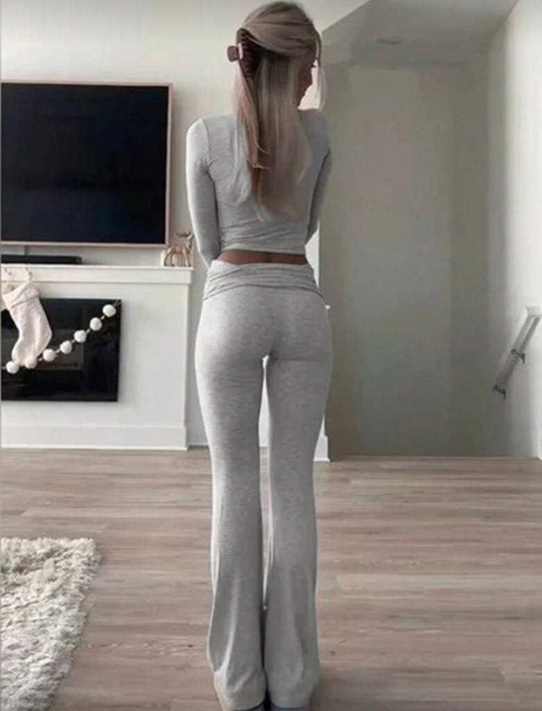• 2 pièces/Ensemble Top à manches courtes col rond décontracté et pantalon long pour femmes