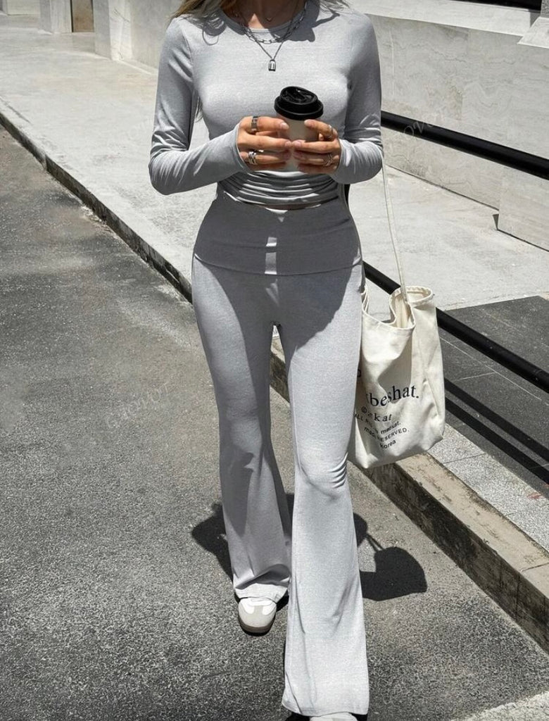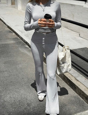 • Ensemble deux pièces pour femmes, t-shirt décontracté d'automne/hiver à col rond et manches longues, et pantalon taille haute, convient pour la maison, les sports et la rue