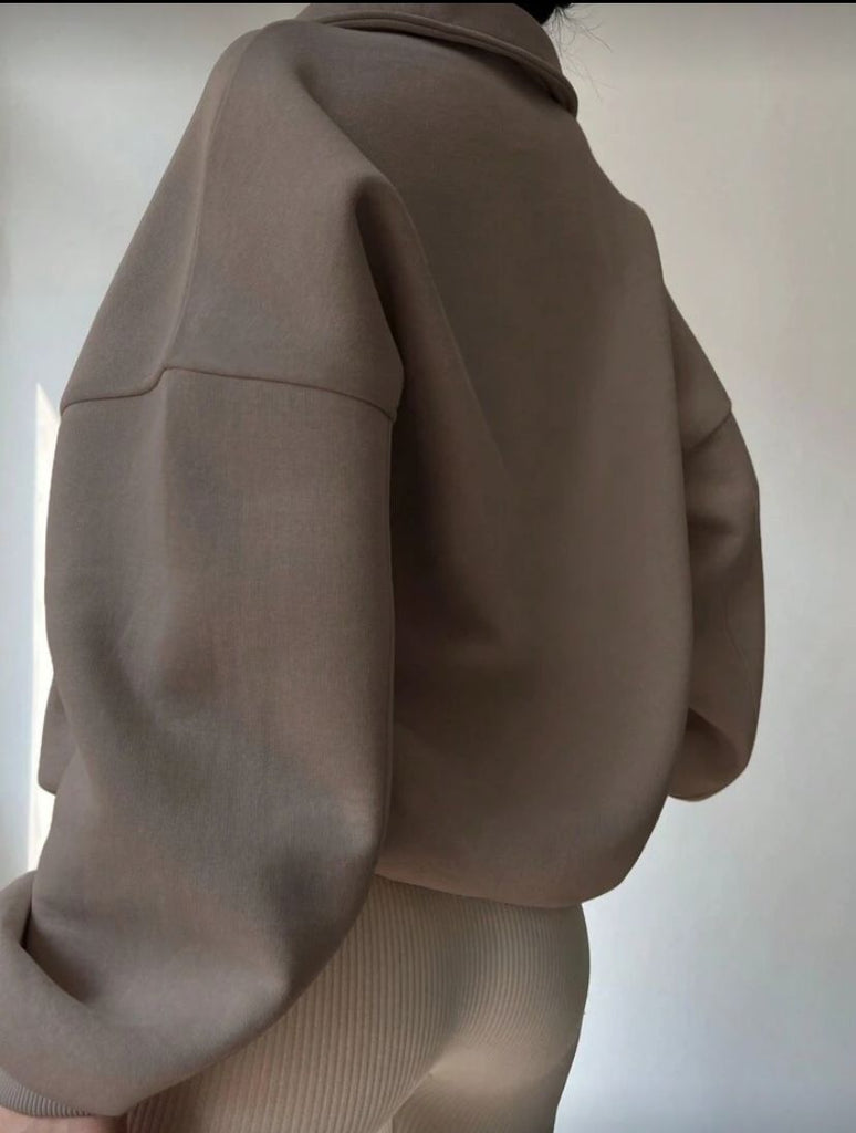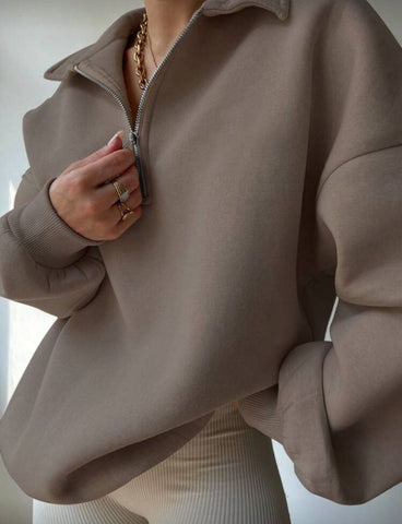 • Sweat à col zippé, coupe oversize et tissu doux. Parfait pour un look chic et décontracté. Idéal à associer avec un legging ou un jean pour un style moderne et confortable.